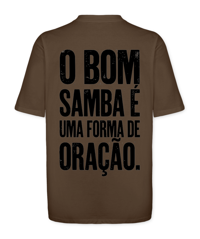Para uns, é ritmo. Para nós, é religião. Esta peça da Coleção Exaltação celebra o encontro sagrado entre a poesia e o batuque. Inspirada na bênção eterna de Vinicius de Moraes — o diplomata que trocou os salões nobres pelas mesas de bar —, a Oversized O Dogma é o uniforme de quem pede licença para sambar. Na frente, aquele que melhor traduziu a alma brasileira. Nas costas, a verdade absoluta que ecoa dos terreiros aos apartamentos: O BOM SAMBA É UMA FORMA DE ORAÇÃO. Feita para quem entende que o "Saravá" é a senha de entrada para a felicidade.