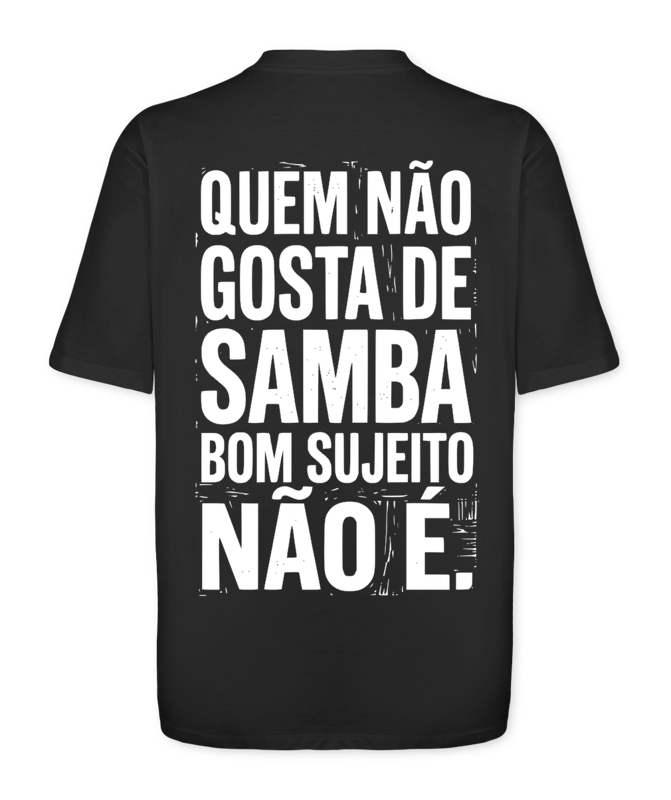 O veredito final. Na Bahia de Caymmi ou no Rio de Janeiro, a lei é uma só: o samba é o teste definitivo de caráter. Esta peça da Coleção Exaltação não é apenas uma roupa, é um atestado de bons antecedentes culturais. Na frente, o mestre que desenhou o mar e o samba: CAYMMI. Nas costas, a sentença que separa quem é de quem não é: QUEM NÃO GOSTA DE SAMBA BOM SUJEITO NÃO É. Feita para quem tem samba no pé, ou pelo menos, na alma.