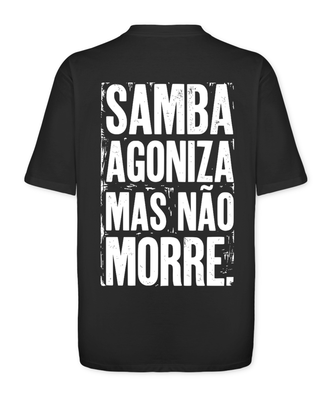 Eles tentaram calar, mas a gente canta mais alto. Esta peça da Coleção Exaltação carrega o hino definitivo da sobrevivência cultural brasileira. Inspirada na sabedoria imortal de Nelson Sargento, a Oversized Resistência é um lembrete diário de que nossa cultura é inquebrável. Na frente, carregamos a patente mais alta do morro: SARGENTO. Nas costas, a sentença que o tempo provou ser verdade: SAMBA AGONIZA MAS NÃO MORRE. Feita para quem entende que estar vivo, nos dias de hoje, já é um ato de rebeldia.