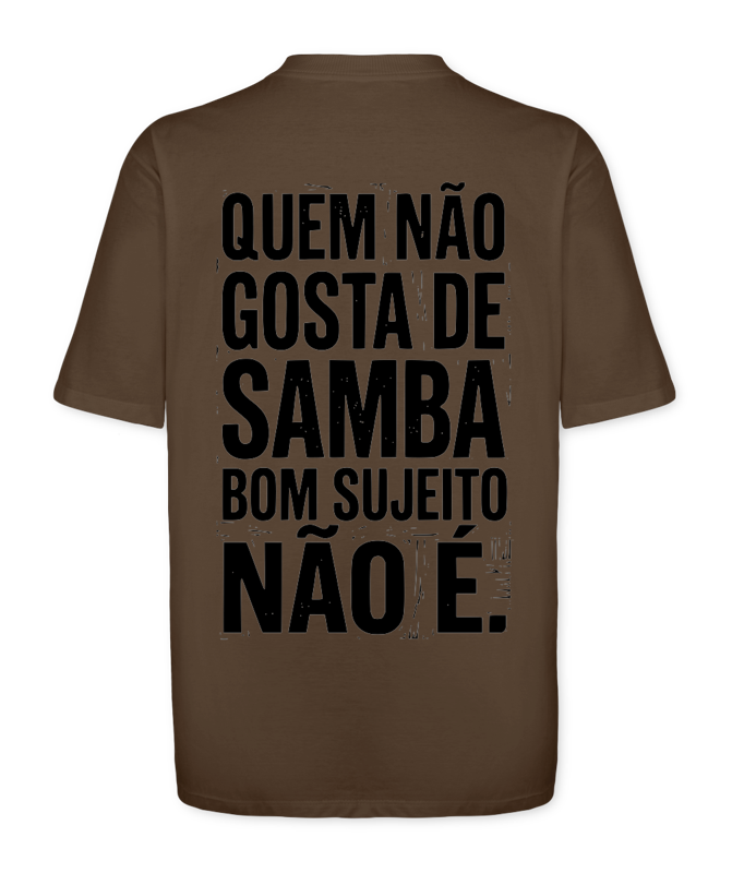O veredito final. Na Bahia de Caymmi ou no Rio de Janeiro, a lei é uma só: o samba é o teste definitivo de caráter. Esta peça da Coleção Exaltação não é apenas uma roupa, é um atestado de bons antecedentes culturais. Na frente, o mestre que desenhou o mar e o samba: CAYMMI. Nas costas, a sentença que separa quem é de quem não é: QUEM NÃO GOSTA DE SAMBA BOM SUJEITO NÃO É. Feita para quem tem samba no pé, ou pelo menos, na alma.