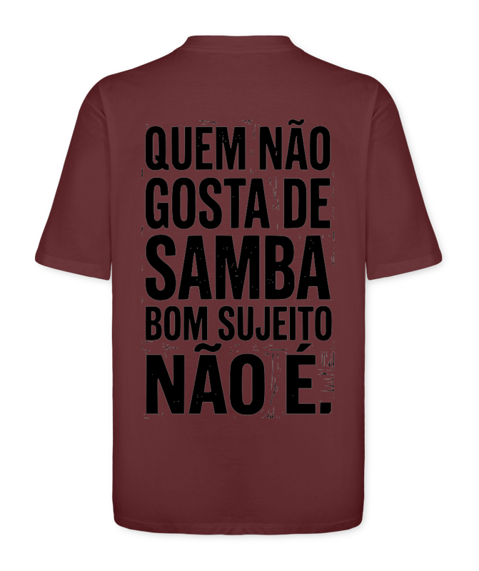 O veredito final. Na Bahia de Caymmi ou no Rio de Janeiro, a lei é uma só: o samba é o teste definitivo de caráter. Esta peça da Coleção Exaltação não é apenas uma roupa, é um atestado de bons antecedentes culturais. Na frente, o mestre que desenhou o mar e o samba: CAYMMI. Nas costas, a sentença que separa quem é de quem não é: QUEM NÃO GOSTA DE SAMBA BOM SUJEITO NÃO É. Feita para quem tem samba no pé, ou pelo menos, na alma.