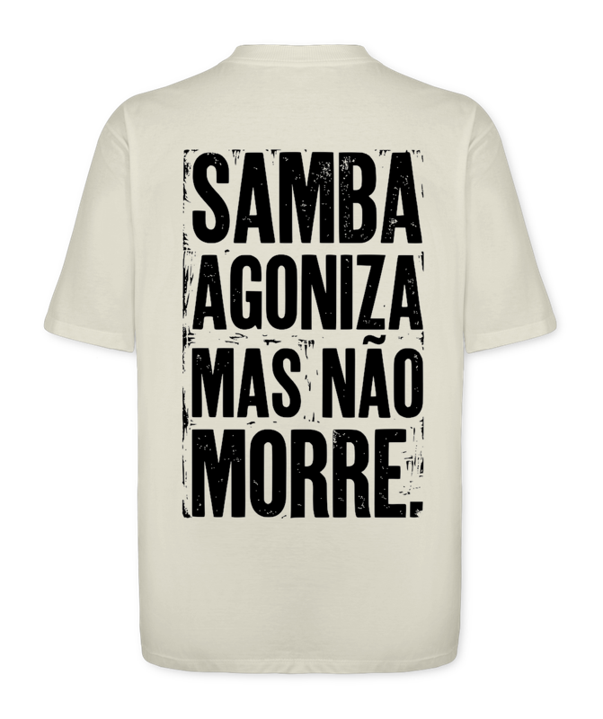 Eles tentaram calar, mas a gente canta mais alto. Esta peça da Coleção Exaltação carrega o hino definitivo da sobrevivência cultural brasileira. Inspirada na sabedoria imortal de Nelson Sargento, a Oversized Resistência é um lembrete diário de que nossa cultura é inquebrável. Na frente, carregamos a patente mais alta do morro: SARGENTO. Nas costas, a sentença que o tempo provou ser verdade: SAMBA AGONIZA MAS NÃO MORRE. Feita para quem entende que estar vivo, nos dias de hoje, já é um ato de rebeldia.