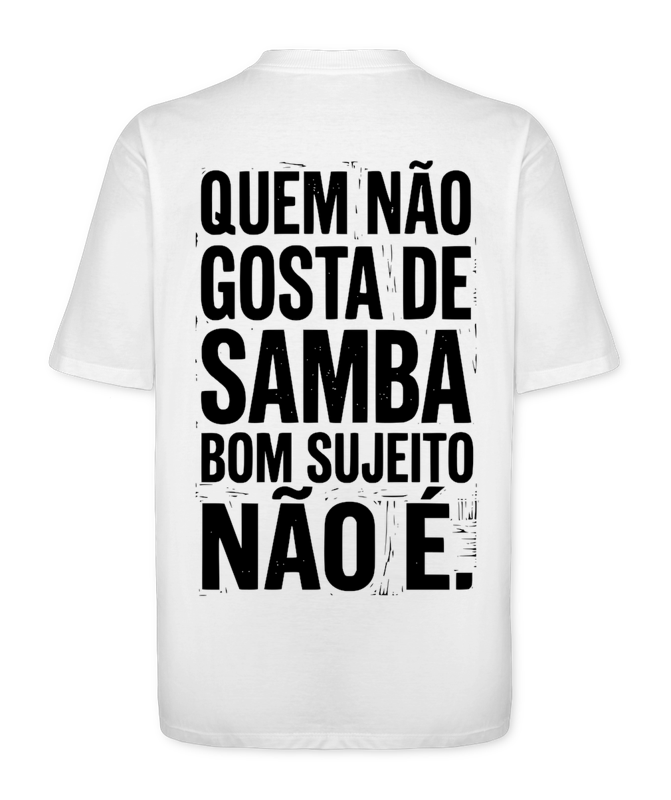 O veredito final. Na Bahia de Caymmi ou no Rio de Janeiro, a lei é uma só: o samba é o teste definitivo de caráter. Esta peça da Coleção Exaltação não é apenas uma roupa, é um atestado de bons antecedentes culturais. Na frente, o mestre que desenhou o mar e o samba: CAYMMI. Nas costas, a sentença que separa quem é de quem não é: QUEM NÃO GOSTA DE SAMBA BOM SUJEITO NÃO É. Feita para quem tem samba no pé, ou pelo menos, na alma.
